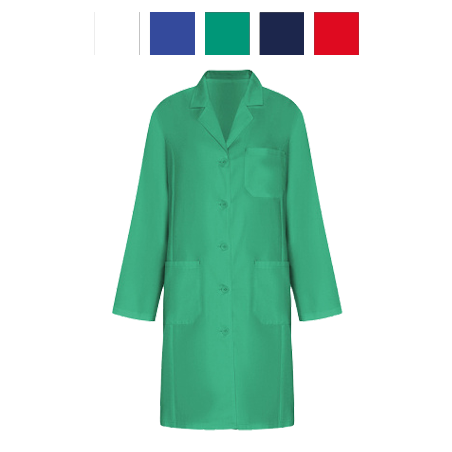 Dámský pracovní plášť s dlouhým rukávem. Plášť má límec s klopou, středové zapínání na 5 knoflíků ve stejné barvě, náprsní kapsu, dvě postranní kapsy a pásek vzadu. Plášť je vhodný do laboratoře, zdravotnictví, center estetiky, potravinového odvětví i pro úklid.