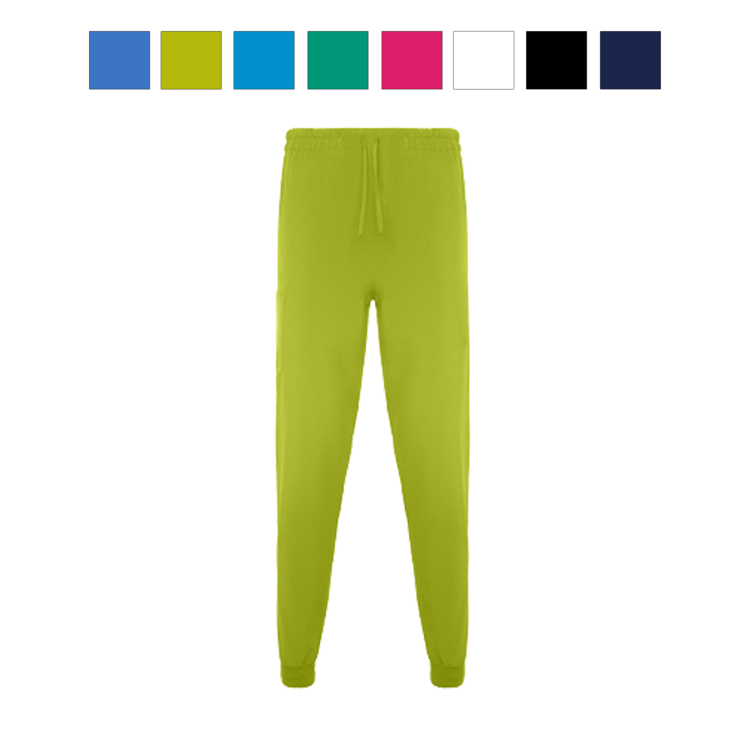 Zdravotnické kalhoty mají elastický pas, stahovací šňůrku a boční kapsy.